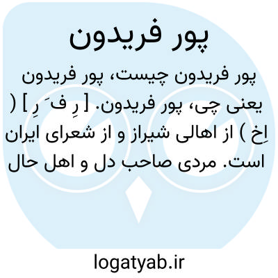 پور فریدون. [ رِ ف َ رِ ] ( اِخ ) از اهالی شیراز و از شعرای ایران است. مردی صاحب دل و اهل حال بوده و اشعار دلکش سروده که از آن جمله است: