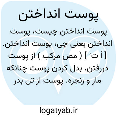 پوست انداختن. [ اَ ت َ ] ( مص مرکب ) از پوست دررفتن. بدل کردن پوست چنانکه مار و زنجره. پوست از تن بدر کردن بعض جانوران چون مار و چزد ( زنجره ). منسلخ شدن. انسلاخ. || سخت رنج دیدن. رنجی فراوان بردن برای نیل بمقصودی. تعبی سخت بردن در راهی یا کاری یا از شدت حرارت آفتاب. سخت تعب بردن از درازی یا سختی کار یا راه یا هوا: از گرمای امسال پوست انداختیم.
