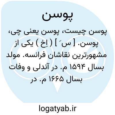 پوسن. [ س َ ] ( اِخ ) یکی از مشهورترین نقاشان فرانسه. مولد بسال 1594 م. در آندلی و وفات بسال 1665 م. در روم. لوئی سیزدهم توجه کاملی به وی داشتی و در انعام و اکرام او کوتاهی نکردی. وی پاره ای از وقایع تاریخی و غیره را در کمال مهارت و تردستی تصویر کرده و بیادگار گذارده است.