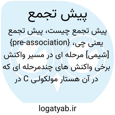 {pre-association} [شیمی] مرحله ای در مسیر واکنش برخی واکنش های چندمرحله ای که در آن هستار مولکولـی C در جفت همتافت های رویارو (encounter pair or encounter complex ) با A و نیز B ای که از A شکل می گیرد، حضور دارند
