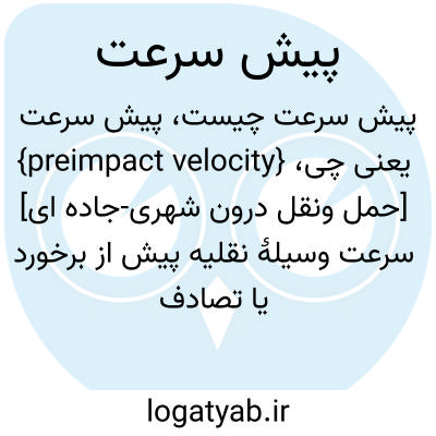 {preimpact velocity} [حمل ونقل درون شهری-جاده ای] سرعت وسیلۀ نقلیه پیش از برخورد یا تصادف