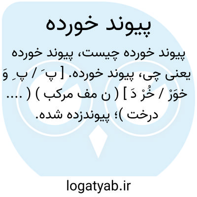 پیوند خورده. [ پ َ / پ ِ وَ خوَرْ / خُرْ دَ ] ( ن مف مرکب ) (.... درخت )؛ پیوندزده شده. پیوندیافته. رجوع به پیوند شود. || بندخورده. بندزده: قصعةٌ مشعبة؛ کاسه پیوندخورده. ( منتهی الارب ).