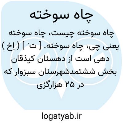 چاه سوخته. [ ت َ ] ( اِخ ) دهی است از دهستان کیذقان بخش ششتمدشهرستان سبزوار که در 25 هزارگزی جنوب خاوری ششتمد واقع شده. کوهستانی و سردسیر است و115 تن سکنه دارد.آبش از قنات، محصولش غلات و پنبه، شغل اهالی زراعت وراهش مالرو است. ( از فرهنگ جغرافیایی ایران ج 9 ).