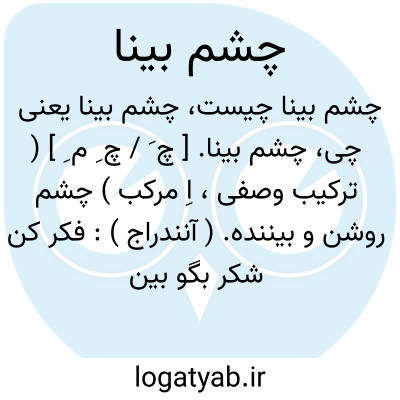 چشم بینا. [ چ َ / چ ِ ] ( ص مرکب ) کسی که چشم او دور را خوب بیند و تیزچشم باشد. دوربین. || بیناچشم. روشن بین. عاقبت بین. دورنگر.