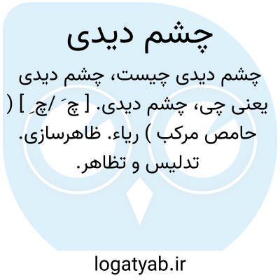 چشم دیدی. [ چ َ /چ ِ ] ( حامص مرکب ) ریاء. ظاهرسازی. تدلیس و تظاهر.
