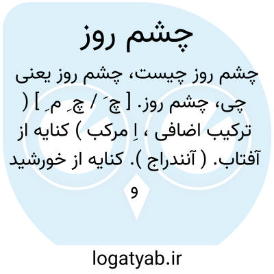 چشم روز. [ چ َ / چ ِ م ِ ] ( ترکیب اضافی، اِ مرکب ) کنایه از آفتاب. ( آنندراج ). کنایه از خورشید و نور آن: