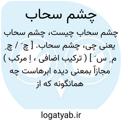 چشم سحاب. [ چ َ / چ ِ م ِ س َ ] ( ترکیب اضافی، اِ مرکب ) مجازاً بمعنی دیده ابرهاست چه همانگونه که از دیده آدمی اشک میریزد از سحاب نیز باران میبارد، پس بمجاز برای سحاب هم، چشمی و دیده ای فرض کرده اند: