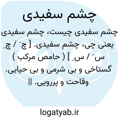 چشم سفیدی. [ چ َ / چ ِ س َ / س ِ ] ( حامص مرکب ) گستاخی و بی شرمی و بی حیایی. وقاحت و پررویی. || لجاجت وحرف نشنوی. رجوع به چشم سفید و چشم سفیدی کردن شود.