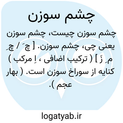 چشم سوزن. [ چ َ / چ ِ م ِ زَ ] ( ترکیب اضافی، اِ مرکب ) کنایه از سوراخ سوزن است. ( بهار عجم ). سوراخ سوزن. چشمه سوزن. بعربی، سم الخیاط. کون سوزن ( در اصطلاح عامه ):
