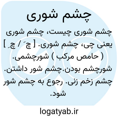چشم شوری. [ چ َ / چ ِ ] ( حامص مرکب ) شورچشمی. شورچشم بودن.چشم شور داشتن. چشم زخم زنی. رجوع به چشم شور شود. || در لهجه عامیانه، بمعنی چشم شویی و شست وشوی دادن چشم. رجوع به چشم شویی شود. || ( اِ مرکب ) در تداول عامه، ظرف چشم شوری را هم گویند.