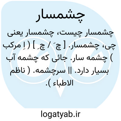 چشمسار. [ چ َ / چ ِ ] ( اِ مرکب ) چشمه سار. جائی که چشمه آب بسیار دارد. || سرچشمه. ( ناظم الاطباء ).
