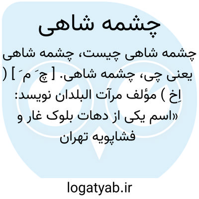 چشمه شاهی. [ چ َ م َ ] ( اِخ ) مؤلف مرآت البلدان نویسد: «اسم یکی از دهات بلوک غار و فشاپویه تهران است ». ( از مرآت البلدان ج 4 ص 236 ). دهی است جزء دهستان غار بخش ری شهرستان تهران که در 9 هزارگزی جنوب باختر ری و 4 هزارگزی راه شوسه قم واقع است و 199 تن سکنه دارد. آبش از قنات و در فصل بهار از سیل آب رود کن. محصولش غلات، صیفی و چغندر قند، شغل اهالی زراعت و راهش مالرو است اما از کهریزک ماشین هم میتوان برد. ( از فرهنگ جغرافیائی ایران ج 1 ).