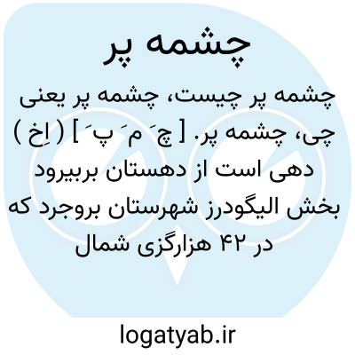 چشمه پر. [ چ َ م َ پ َ ] ( اِخ ) دهی است از دهستان بربیرود بخش الیگودرز شهرستان بروجرد که در 42 هزارگزی شمال الیگودرز و 10 هزارگزی خاور راه شوسه اراک به دورود واقع است. جلگه و معتدل است و 75 تن سکنه دارد. آبش از قنات. محصولش غلات و لبنیات. شغل اهالی زراعت و گله داری. صنایع دستی زنان قالی و جاجیم بافی وراهش مالرو است. ( از فرهنگ جغرافیایی ایران ج 6 ).
