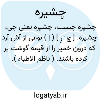 چشیره. [ چ َ رِ ] ( اِ ) نوعی از آش آرد که درون خمیر را از قیمه گوشت پر کرده باشند. ( ناظم الاطباء ).