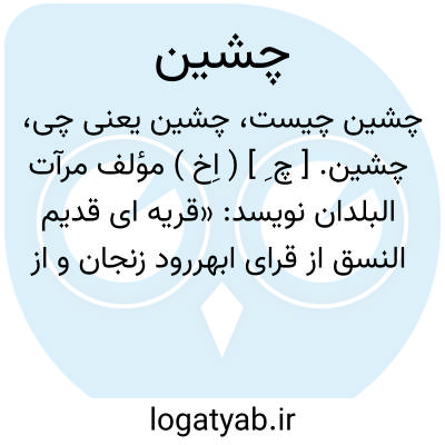 چشین. [ چ ِ ] ( اِخ ) مؤلف مرآت البلدان نویسد: «قریه ای قدیم النسق از قرای ابهررود زنجان و از دهکده های مشهور سره بند میباشد که در میان کوه واقع شده و 68 خانوار رعیت دارد. زراعت آن غله دیمی و آبی است که از رود دولت آباد و رود عباس آباد مشروب میشود و این آبادی ملک نواب والا رکن الدوله محمدتقی میرزا است ». ( از مرآت البلدان ج 4 ص 247 ).