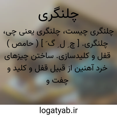 چلنگری. [ چ ِ ل ِ گ َ ] ( حامص ) قفل و کلیدسازی. ساختن چیزهای خرد آهنین از قبیل قفل و کلید و چفت و رزه و میخ و انبر و نظایر اینها. عمل چلنگر. کار و پیشه قفل ساز. و رجوع به چلنگر شود. || ( اِ ) دکان و کارگاه چلنگر. رجوع به چلنگرخانه شود.
