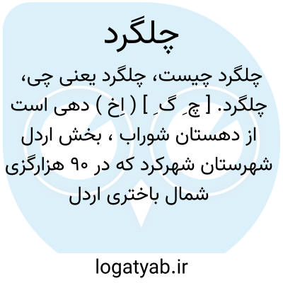 چلگرد. [ چ ِ گ ِ ] ( اِخ ) دهی است از دهستان شوراب، بخش اردل شهرستان شهرکرد که در 90 هزارگزی شمال باختری اردل، وصل براه کوه رنگ واقع است. کوهستانی ومعتدل است و 21 تن سکنه دارد. آبش از چشمه. محصولش غلات، عدس، کتیرا، پشم، روغن و گزانگبین. شغل اهالی زراعت و گله داری، صنایع دستی زنان جاجیم بافی و راهش مالرو است. تونل کوهرنگ در فاصله 2هزارگزی این آبادی ساخته شده است. ( از فرهنگ جغرافیایی ایران ج 10 ).