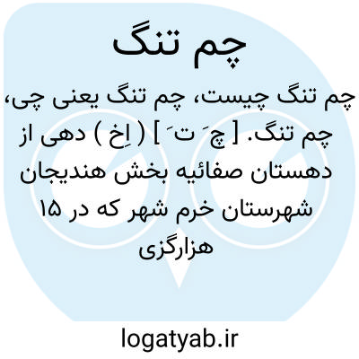 چم تنگ. [ چ َ ت َ ] ( اِخ ) دهی از دهستان شبانکاره بخش برازجان شهرستان بوشهر که در 27 هزارگزی باختر برازجان، در حاشیه شمالی رودحله واقع است. جلگه و گرمسیر است و 300 تن سکنه دارد. آبش از رودخانه شاپور. محصولش غلات. شغل اهالی زراعت و راهش فرعی است. ( از فرهنگ جغرافیایی ایران ج 7 ).
