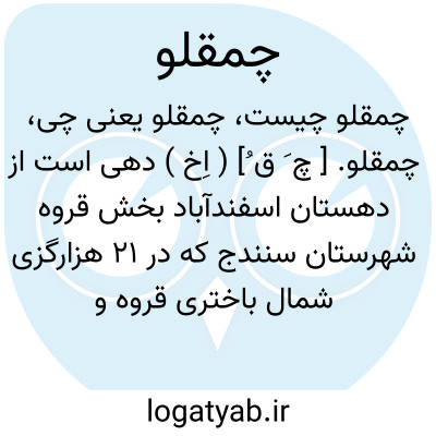 چمقلو. [ چ َ ق ُ] ( اِخ ) دهی است از دهستان اسفندآباد بخش قروه شهرستان سنندج که در 21 هزارگزی شمال باختری قروه و یک هزارگزی شمال راه شوسه قروه به سنندج واقعست. جلگه وسردسیر است و 250 تن سکنه دارد. آبش از چشمه. محصولش غلات، لبنیات و قلمستان. شغل اهالی زراعت و گله داری. صنایع دستی زنان، بافتن قالیچه، جاجیم و گلیم و راهش اتومبیل رو است. ( از فرهنگ جغرافیایی ایران ج 5 ).