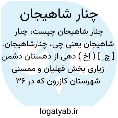 چنارشاهیجان. [ چ ِ ] ( اِخ ) دهی از دهستان دشمن زیاری بخش فهلیان و ممسنی شهرستان کازرون که در 36 هزارگزی جنوب فهلیان، کنار راه شوسه کازرون به فهلیان واقع است. کوهستانی است و هوایش معتدل است و 303 تن سکنه دارد. آبش از چشمه. محصولش غلات و شغل اهالی زراعت و گلیم بافی است. ( از فرهنگ جغرافیایی ایران ج 7 ).