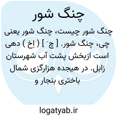چنگ شور. [ چ َ ] ( اِخ ) دهی است ازبخش پشت آب شهرستان زابل. در هیجده هزارگزی شمال باختری بنجار و دوازده هزارگزی راه فرعی ادیمی بزابل واقع شده. ناحیه ای است جلگه ای، گرم و معتدل. و دارای 118 تن سکنه میباشد. فارسی و بلوچی زبانند. از رودخانه هیرمند مشروب میشود. محصولاتش غلات، لبنیات. اهالی بکشاورزی، گله داری، گلیم و کرباس بافی گذران میکنند.راهش مالرو است. ( از فرهنگ جغرافیایی ایران ج 8 ).