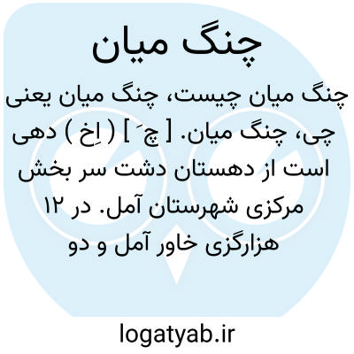 چنگ میان. [ چ َ ] ( اِخ ) دهی است از دهستان دشت سر بخش مرکزی شهرستان آمل. در 12 هزارگزی خاور آمل و دو هزارگزی جنوب راه شوسه آمل به بابل واقع است. دشت و معتدل و مرطوب و مالاریائی است و 290 تن سکنه دارد. شیعه اند و بمازندرانی و فارسی تکلم کنند. از گرمرود هراز مشروب میشود.محصولش برنج، صیفی و حبوبات است. شغل اهالی زراعت وراهش مالرو است. ( از فرهنگ جغرافیایی ایران ج 3 ).
