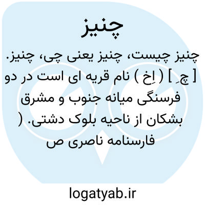 چنیز. [ چ ِ ] ( اِخ ) نام قریه ای است در دو فرسنگی میانه جنوب و مشرق بشکان از ناحیه بلوک دشتی. ( فارسنامه ناصری ص 213 ).