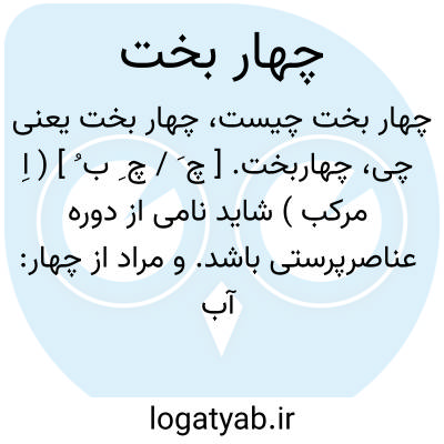 چهاربخت. [ چ َ / چ ِ ب ُ ] ( اِ مرکب ) شاید نامی از دوره عناصرپرستی باشد. و مراد از چهار: آب و باد و خاک و آتش باشد و معرب آن صُهاربخت؛ یعنی چهار نجات داد. ( یادداشت مؤلف ). چهاربخت. [ چ َ/ چ ِ ب ُ ] ( اِ مرکب ) صلیب. خاج. ( یادداشت مؤلف ). چهاربخت.[ چ َ ب ُ ] ( اِخ ) نام ابن استندار، یکی از اجداد یحیی بن مندة. و معرب آن صهاربخت است. ( یادداشت مؤلف ).