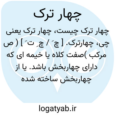 چهارترک. [ چ َ / چ ِ ت َ ] ( ص مرکب )صفت کلاه یا خیمه ای که دارای چهاربخش باشد. یا از چهاربخش ساخته شده باشد. || در اصطلاح بنایی نوعی سقف گنبدی شکل را گویند. رجوع به چارترک شود.