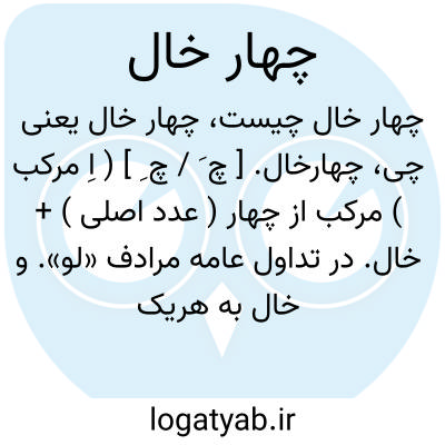 چهارخال. [ چ َ / چ ِ ] ( اِ مرکب ) مرکب از چهار ( عدد اصلی ) + خال. در تداول عامه مرادف «لو». و خال به هریک از نقش های قراردادی ورق های بازی اطلاق شود. و هر خال نماینده واحدی باشد. چهارلو، برگ یا ورق بازی که چهارلو یا چهار نقش داشته باشد. || اصطلاح دیگری است در ورق بازی و آن چهارگونه نقش منقوش بر ورقهای بازی است و آن نقوش: خال سیاه خشت دل گشنیز یا خاج است. || اصطلاح دیگری است در ورق بازی و آن چهار مشابه است از چهار نقش چون: چهارآس، چهارشاه، چهاربی بی، چهارسرباز، چهارده لو و غیره...