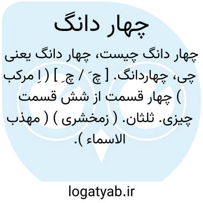 چهاردانگ. [ چ َ / چ ِ ] ( اِ مرکب ) چهار قسمت از شش قسمت چیزی. ثلثان. ( زمخشری ) ( مهذب الاسماء ). دو ثلث. || اصطلاح موسیقی ( آواز ) است. رجوع به دانگ شود. || اصطلاحی در تراشیدن قلم. رجوع به چاردانگ شود.
