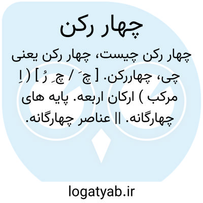 چهاررکن. [ چ َ / چ ِ رُ ] ( اِ مرکب ) ارکان اربعه. پایه های چهارگانه. || عناصر چهارگانه. چهارآخشیج. آب و آتش و باد و خاک. || چهارطبع. طبایع اربعه. || دو دست و دو پا.