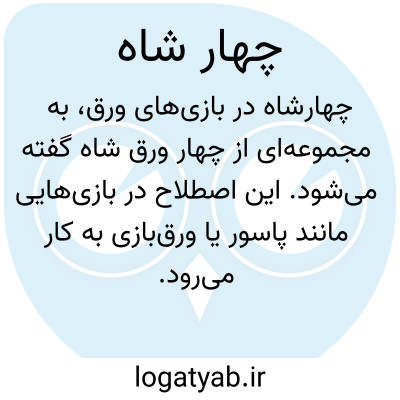 چار شاه. در بازی ورق و آس چهار ورقی که بر آنها صورت شاه مصورست و بر حسب نوع خالی که همراه صورت شاه آید.
