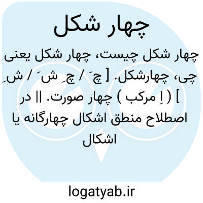 چهارشکل. [ چ َ / چ ِ ش َ / ش ِ ] ( اِ مرکب ) چهار صورت. || در اصطلاح منطق اشکال چهارگانه یا اشکال اربعه منطق. آن عبارت است از: شکل اول: حد وسط در صغری محمول و در کبری موضوع است و شرط انتاج آن «مغکب » یعنی باید صغری موجبه و کبری کلی باشد. شکل دوم: حد وسط در صغری و کبری محمول است و شرط انتاج آن «خین کب » اختلاف مقدمتین است از نظر سلب و ایجاب و کلی بودن کبری. شکل سوم: حد وسط در صغری و کبری موضوع است و شرط انتاج «مغکاین » یعنی صغری موجبه و یکی از دو مقدمه کلی باشد. شکل چهارم: حد وسط در صغری موضوع و در کبری محمول است و شرط انتاج «مین کغ» یا «خین کاین » میباشد که ممکن است دو صورت پیدا کند: اول آنکه دو مقدمه موجبه و صغری کلی باشد. دوم آنکه مقدمتین از نظر سلب و ایجاب اختلاف داشته باشد و یکی از آن دو کلی باشد: