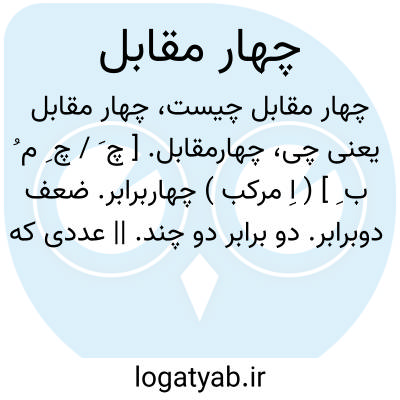 چهارمقابل. [ چ َ / چ ِ م ُ ب ِ ] ( اِ مرکب ) چهاربرابر. ضعف دوبرابر. دو برابر دو چند. || عددی که چهار بار در نفس خود ضرب شود. اما این معنی که در برخی از فرهنگها آمده است بر اساسی نمی نماید. و چهار مقابل به معنای نخستین متداول است و به معنی آخر غلط است. زیرا چهار بار عددی را در نفس خود ضرب کنیم یعنی به توان چهار برسانیم نه اینکه چهار برابر کنیم.
