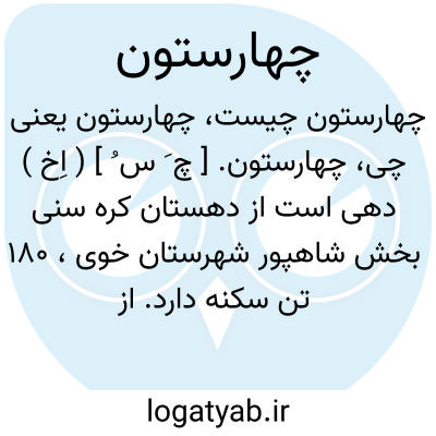 چهارستون. [ چ َ س ُ ] ( اِخ ) دهی است از دهستان کره سنی بخش شاهپور شهرستان خوی، 180 تن سکنه دارد. از چشمه آبیاری میشود. محصولش غلات و شغل اهالی زراعت و گله داری است. ( از فرهنگ جغرافیایی ایران ج 4 ).