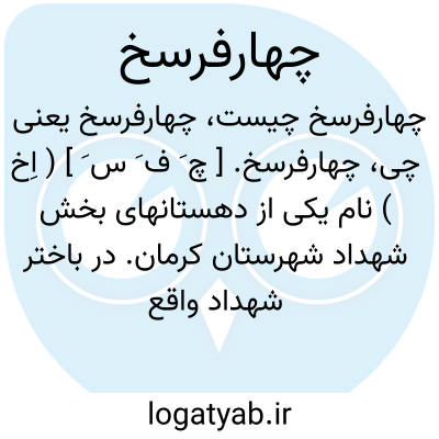 چهارفرسخ. [ چ َ ف َ س َ ] ( اِخ ) نام یکی از دهستانهای بخش شهداد شهرستان کرمان. در باختر شهداد واقع است و حدود آن به شرح زیر است: از شمال به دهستان حرجند، از خاور به دهستان حومه شهداد، از جنوب به دهستان سیرچ، از باختر به دهستان حرجند و درختنگان. وضع طبیعی آن کوهستانی است. محصول عمده اش غلات و خرماست. شغل اهالی کشاورزی است. این دهستان از 19 آبادی تشکیل شده و جمعیت آن 1257 نفر میباشد. ( از فرهنگ جغرافیایی ایران ج 8 ).