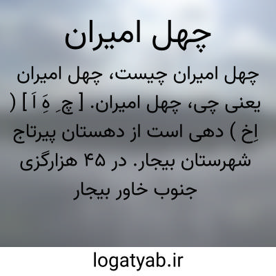 چهل امیران. [ چ ِ هَِ اَ ] ( اِخ ) دهی است از دهستان پیرتاج شهرستان بیجار. در 45 هزارگزی جنوب خاور بیجار کنار رودخانه تلوار واقع است، 280 تن سکنه دارد. از رودخانه تلوار و چشمه آبیاری میشود. محصولش غلات و لبنیات است، شغل اهالی کشاورزی و گله داری است. ( از فرهنگ جغرافیایی ایران ج 5 ).