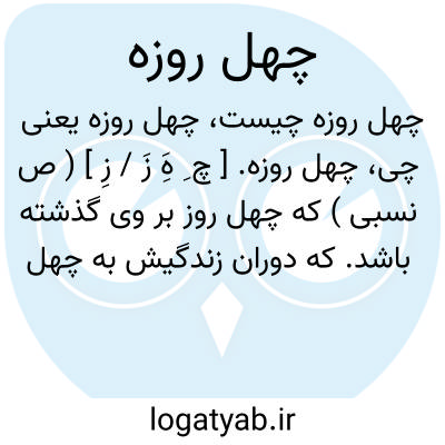 چهل روزه. [ چ ِ هَِ زَ / زِ ] ( ص نسبی ) که چهل روز بر وی گذشته باشد. که دوران زندگیش به چهل روز برآمده باشد. که مدت حیاتش به چهل روز بالغ شده باشد.