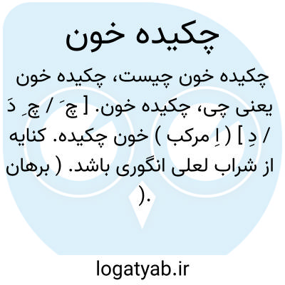 چکیده خون. [ چ َ / چ ِ دَ / دِ ] ( اِ مرکب ) خون چکیده. کنایه از شراب لعلی انگوری باشد. ( برهان ). کنایه از می انگوری باشد. ( انجمن آرا ). کنایه از می سرخ. ( آنندراج ). شراب لعلی. ( ناظم الاطباء ). کنایه از شراب سرخ رنگ که از انگور سازند: