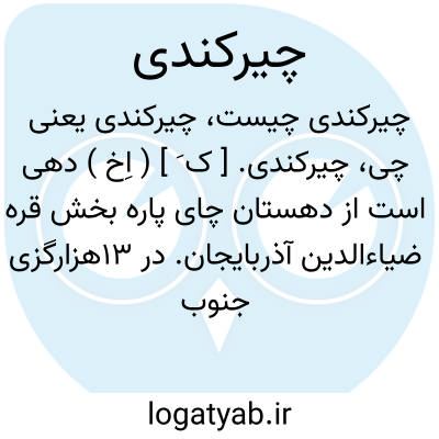 چیرکندی. [ ک َ ] ( اِخ ) دهی است از دهستان چای پاره بخش قره ضیاءالدین آذربایجان. در 13هزارگزی جنوب باختری قره ضیاءالدین و5 هزار و پانصد گزی خاور شوسه خوی به ماکو واقع است، 438 تن سکنه دارد. از چشمه آبیاری میشود. محصولش غلات و حبوبات است. ( از فرهنگ جغرافیایی ایران ج 4 ).