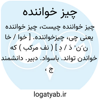 چیزخواننده. [ خوا / خا ن َن ْ دَ / دِ ] ( نف مرکب ) که خواندن تواند. باسواد. دبیر. دانشمند ج، چیزخوانندگان: