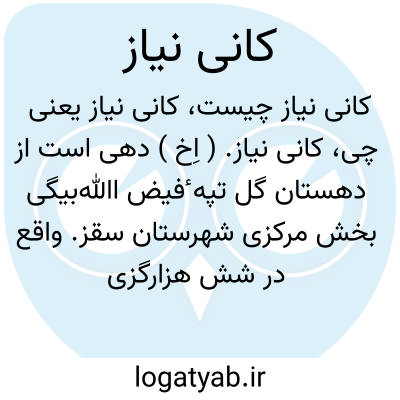 کانی نیاز. ( اِخ ) دهی است از دهستان گل تپه ٔفیض اﷲبیگی بخش مرکزی شهرستان سقز. واقع در شش هزارگزی خاور سقز و 3 هزارگزی شمال خاوری شوسه سقز به میاندوآب. ناحیه ای است کوهستانی، سردسیر و دارای 200 تن سکنه است. از چشمه و رودخانه مشروب میشود و محصولاتش غلات، لبنیات و توتون است و اهالی به کشاورزی و گله داری گذران میکنند. ( از فرهنگ جغرافیائی ایران ج 5 ).
