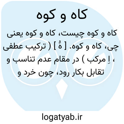کاه و کوه. [ هَُ ] ( ترکیب عطفی، اِ مرکب ) در مقام عدم تناسب و تقابل بکار رود، چون خرد و بزرگ، ریز و درشت، فیل و فنجان و چیزهائی که با هم در کیفیت و کمیت در دو جهت مختلف و دور از تناسب و هم آهنگی باشند.