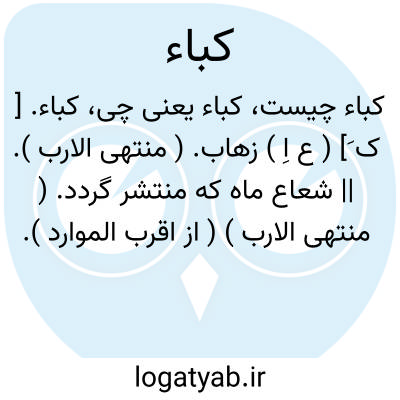 کباء. [ ک َ] ( ع اِ ) زهاب. ( منتهی الارب ). || شعاع ماه که منتشر گردد. ( منتهی الارب ) ( از اقرب الموارد ).