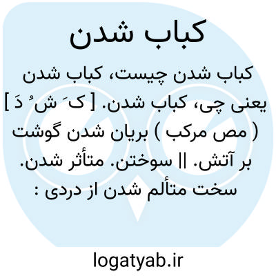 کباب شدن. [ ک َ ش ُ دَ ] ( مص مرکب ) بریان شدن گوشت بر آتش. || سوختن. متأثر شدن. سخت متألم شدن از دردی: