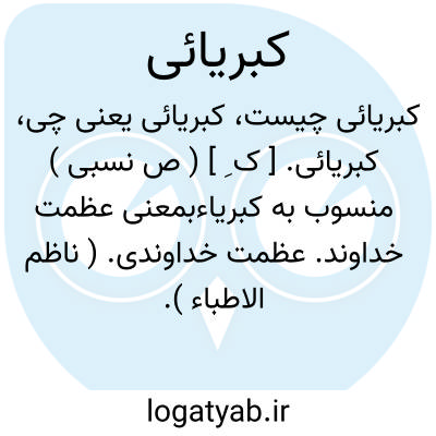 کبریائی. [ ک ِ ] ( ص نسبی ) منسوب به کبریاءبمعنی عظمت خداوند. عظمت خداوندی. ( ناظم الاطباء ).