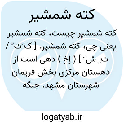 کته شمشیر. [ ک َت َ / ت ِ ش َ ] ( اِخ ) دهی است از دهستان مرکزی بخش فریمان شهرستان مشهد. جلگه ای معتدل. سکنه آن 1210 تن. آب آن از قنات. محصول آنجا غلات و بنشن و چغندر. شغل اهالی زراعت است. ( از فرهنگ جغرافیایی ایران ج 9 ).