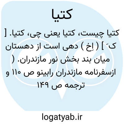 کتیا. [ ک َ ] ( اِخ ) دهی است از دهستان میان بند بخش نور مازندران. ( ازسفرنامه مازندران رابینو ص 110 و ترجمه ص 149 ).