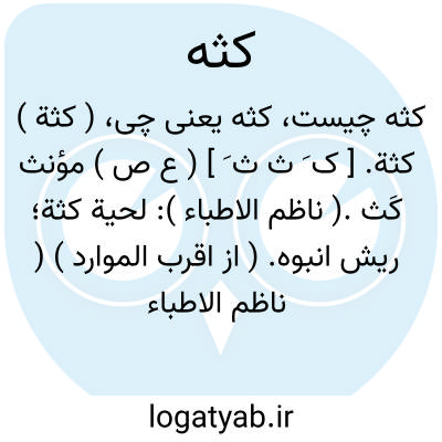( کثة ) کثة. [ ک َ ث ث َ ] ( ع ص ) مؤنث کَث.( ناظم الاطباء ): لحیة کثة؛ ریش انبوه. ( از اقرب الموارد ) ( ناظم الاطباء ) ( منتهی الارب ). رجوع به کث شود.